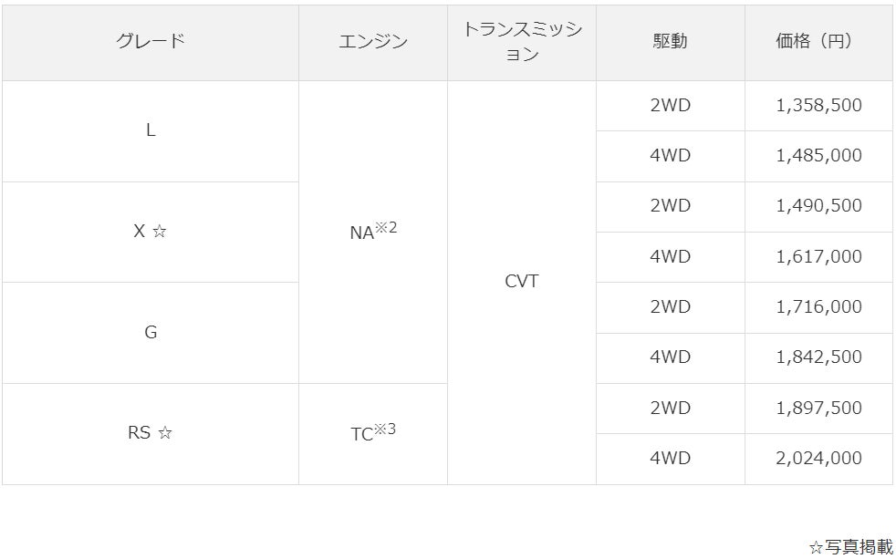 (価格は希望小売価格であり、参考価格です。価格は販売会社が独自に定めますので、詳しくは販売会社にお尋ねください。保険料、税金(消費税を除く)、自動車リサイクル料金、登録等に伴う費用等は別途申し受けます。)