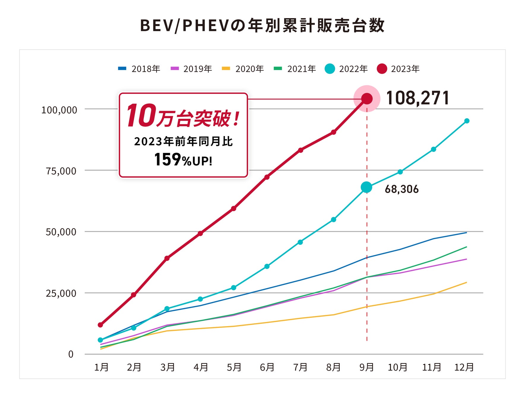 2023年EV・PHEVの新車販売台数、初の10万台突破で市場は急拡大中