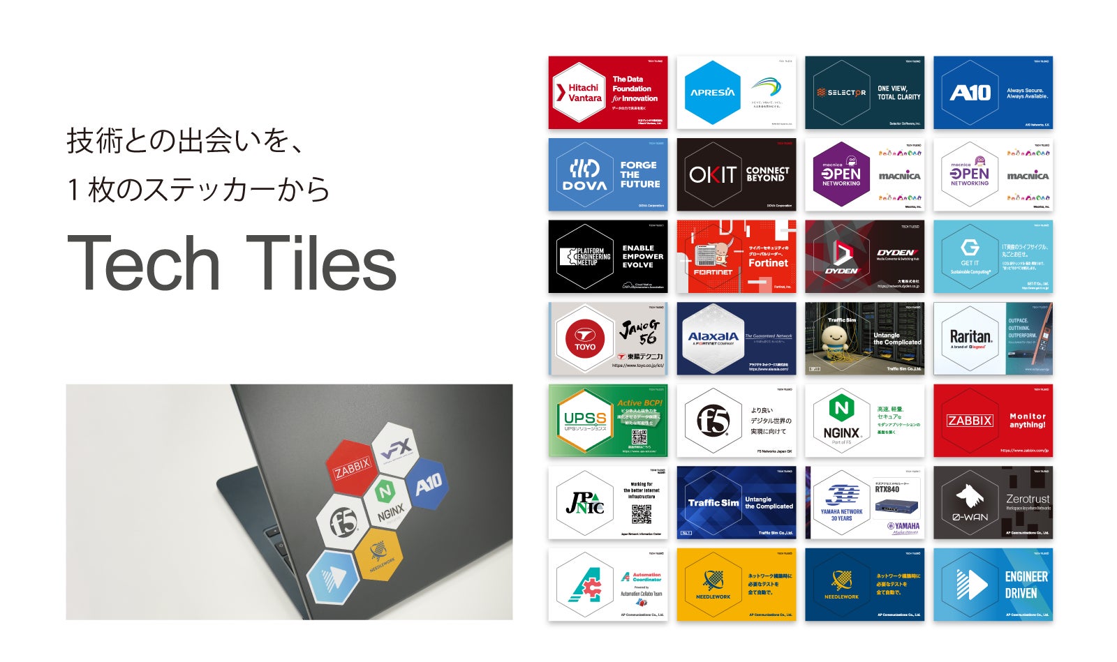 「Tech Tiles」は、業界横断型のノベルティステッカー企画です。