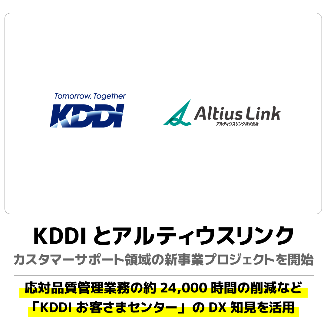 KDDIとアルティウスリンクは2024年11月11日から、「KDDIお客さまセンター」における生成AI活用などのDX知見を生かし、カスタマーサポート領域の新事業プロジェクト(以下 本プロジェクト)を開始します。