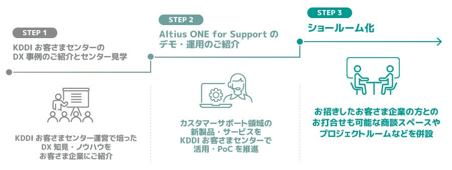 本プロジェクトでは、アルティウスリンクがより高品質なカスタマーサポートサービスを提供することによるCX向上を目指し、同日から新製品・サービスの実証実験を行うパイロットセンターを構築します。また、「KDDIお客さまセンター」のDX知見を活用したコンタクトセンターソリューションの提供を目指します。