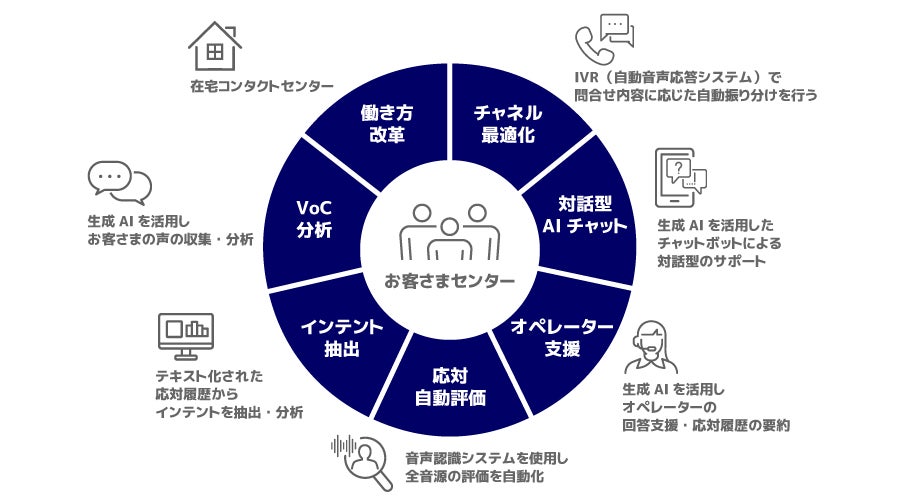 両社は、auやUQ mobileなどのお客さまから月間約200万件のお問い合わせに対応している「KDDIお客さまセンター」において、生成AIなどの最新の技術を組み合わせることで、品質改善によるお客さま満足度の向上とコスト最適化の両面でDXを推進しています。