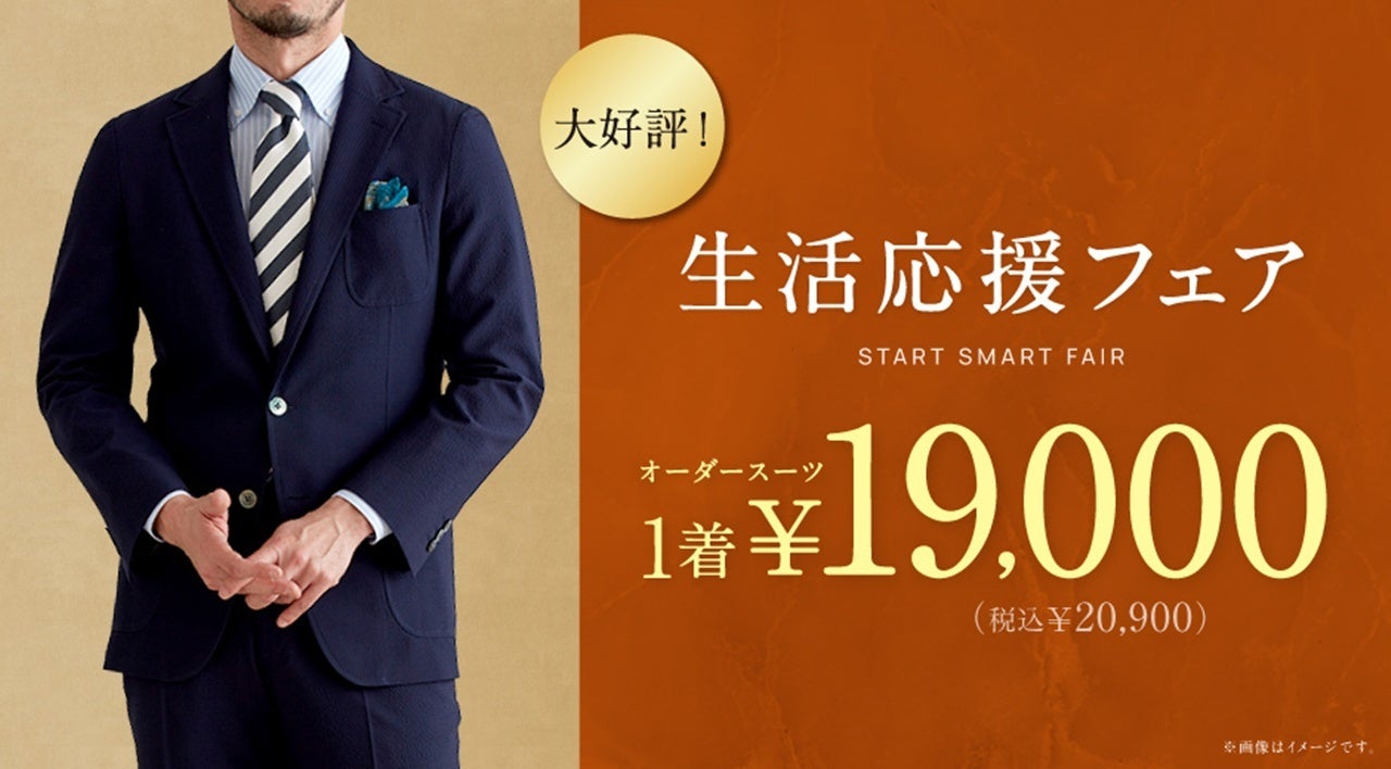 「生活応援フェア」がリニューアル!オーダースーツ専門店 グローバルスタイルが『本格オーダースーツ1着19,000円(税込20,900円)』でご提供。物価高の今こそ本格オーダースーツを手に届く価格で。
