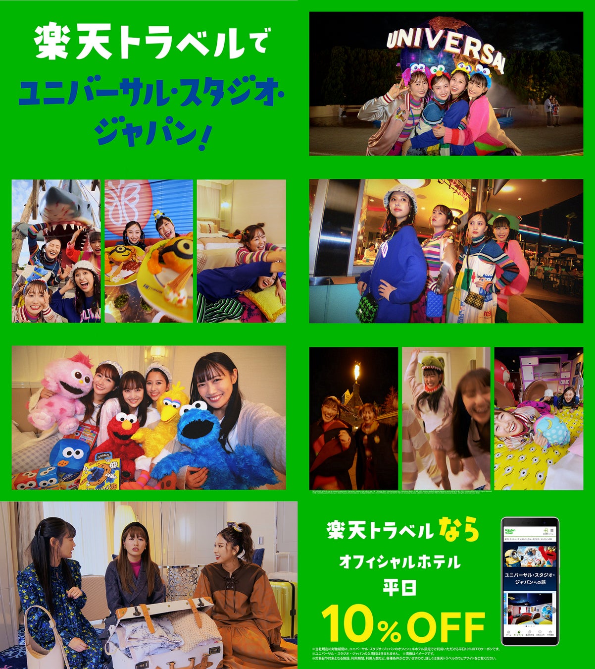 楽天トラベル、ももいろクローバーZさんを起用した新CM「楽天トラベルでユニバーサル・スタジオ・ジャパン」編を11月1日(火)より公開