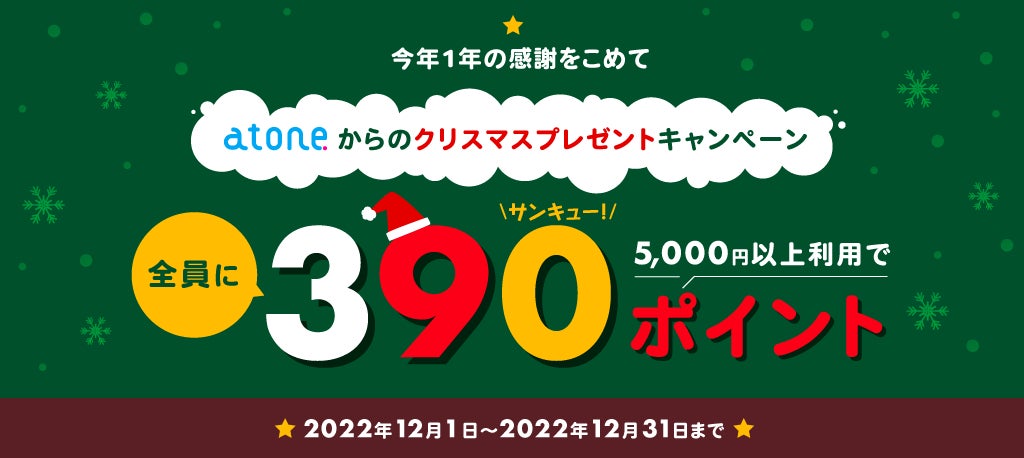 【全員に390ポイント】atoneからのクリスマスプレゼントキャンペーン開催