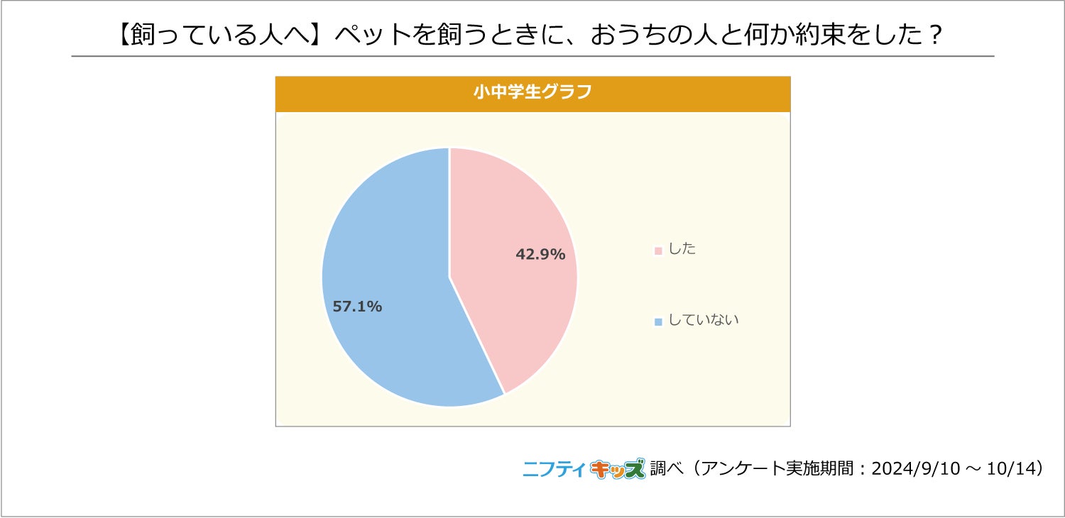 ペットを飼うときに、おうちの人と何か約束を「した」と回答した人は、小中学生の42.9%でした。