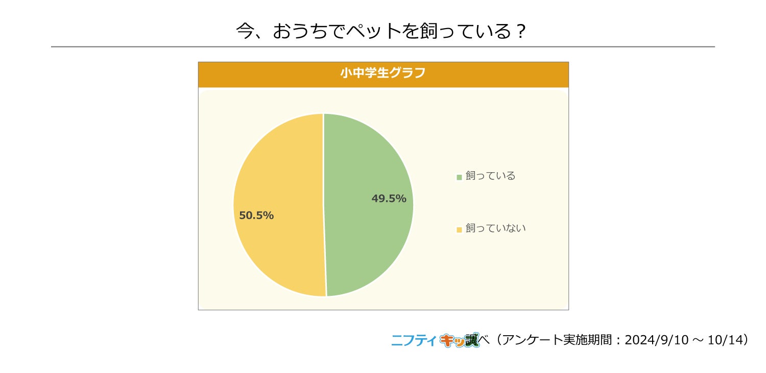 約半数の小中学生がおうちでペットを「飼っている」と回答しました。