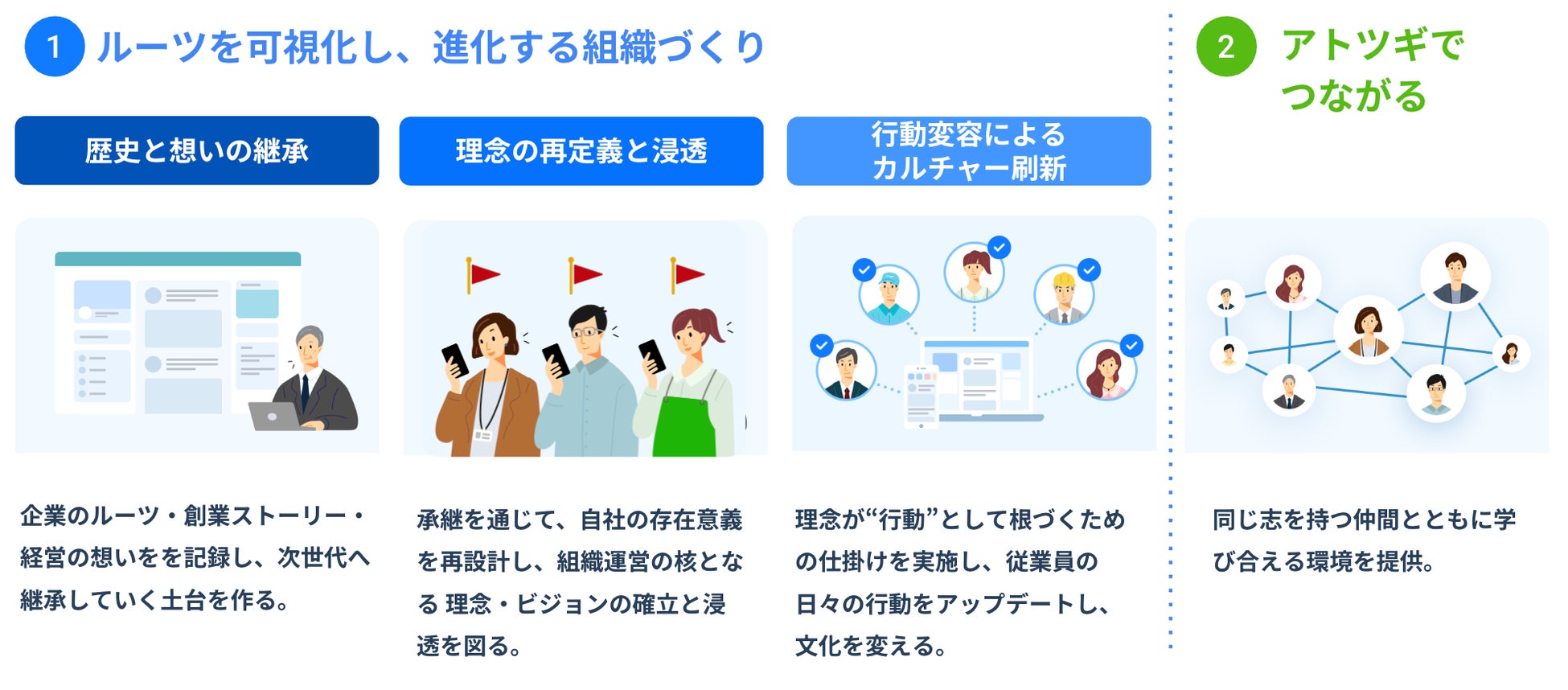 アトツギ企業が “歴史を紡ぎ、組織を変え、仲間とともに学ぶ” ための専用パッケージとして展開いたします。