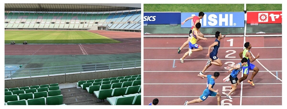トラック種目のフィニッシュを正面から観戦できるため、フィニッシュ直後の選手たちの表情も間近で見ることもできます。
