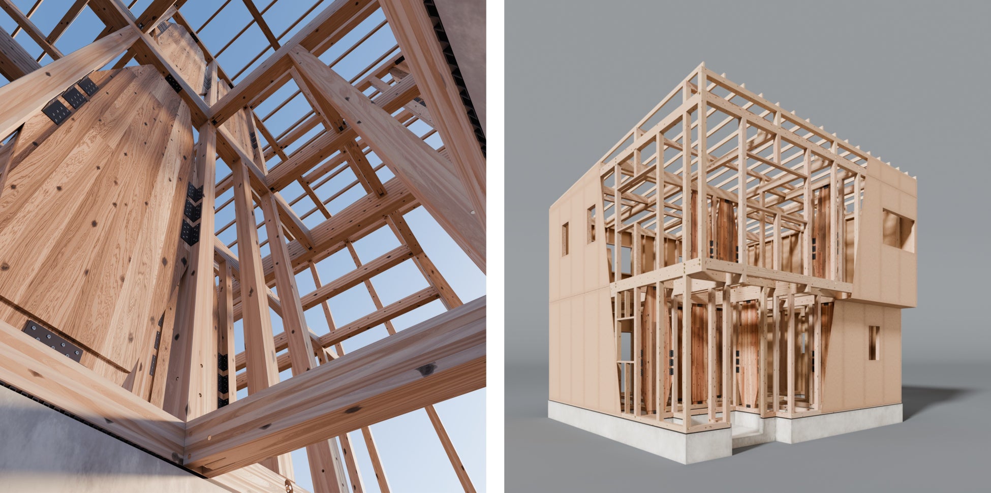 本ショールームは、2024年10月に販売開始した戸建て住宅商品「CLT MASTERS(シーエルティーマスターズ)」に採用している当社オリジナル開発の「CLTハイブリッド構法」によって建築しており、あえて構造躯体を一部現しにすることで、通常壁の中に隠れてしまう部分の展示を行います。