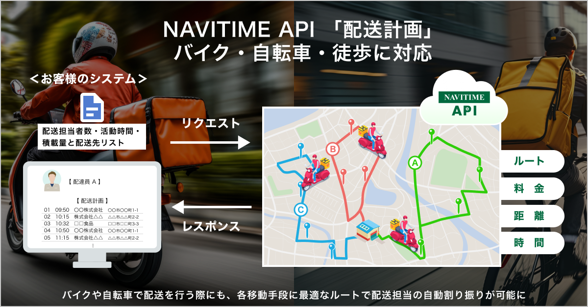 『NAVITIME API』「配送計画」機能が、バイク・自転車・徒歩に対応!