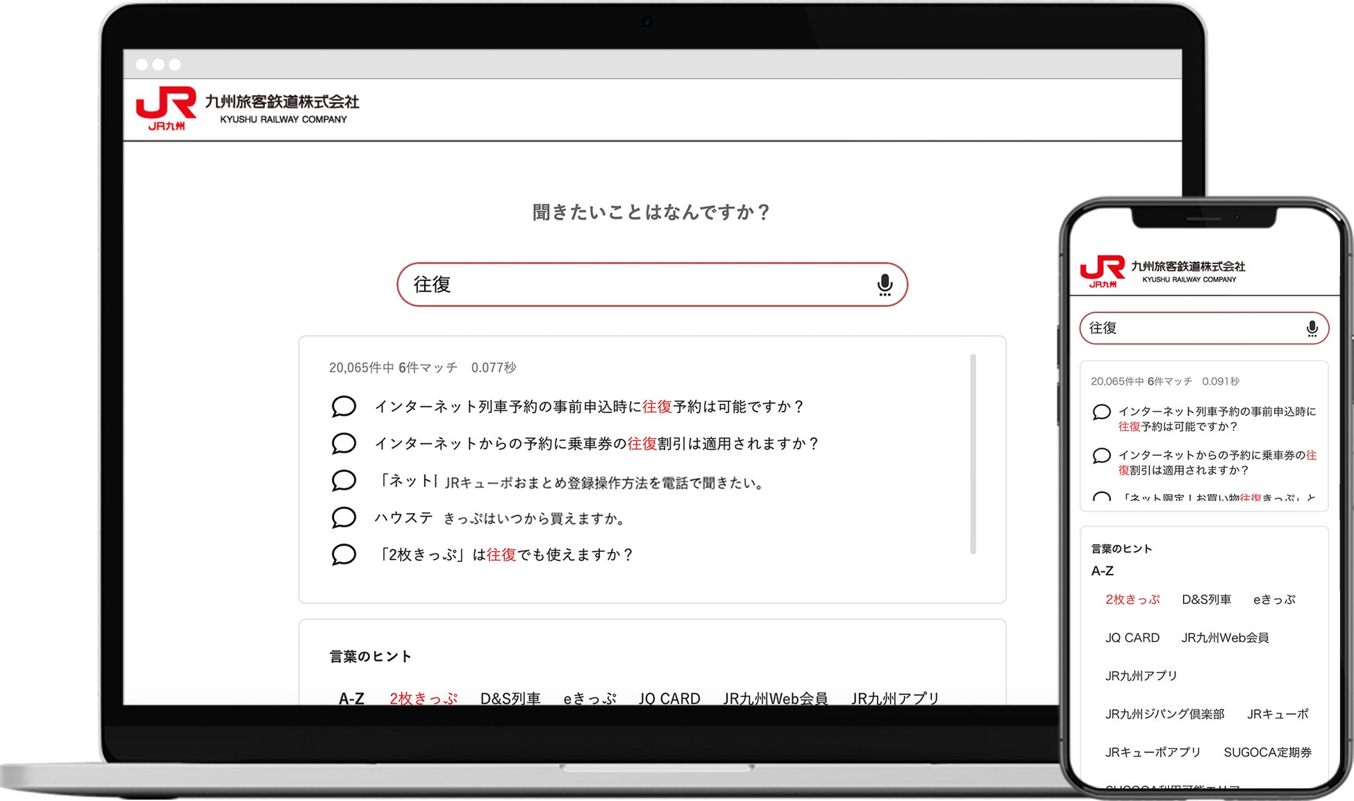 これにより、特に問い合わせが多い忘れ物、オンラインチケットの利用方法、割引きっぷ、ネット予約システムなどの疑問を、JR九州のWebサイト上でスムーズに解消できるようになりました。デジタル技術を活用しよりよい顧客体験の提供を目指すJR九州を、当社はFAQシステムの構築と伴走支援を通じてサポートしてまいります。