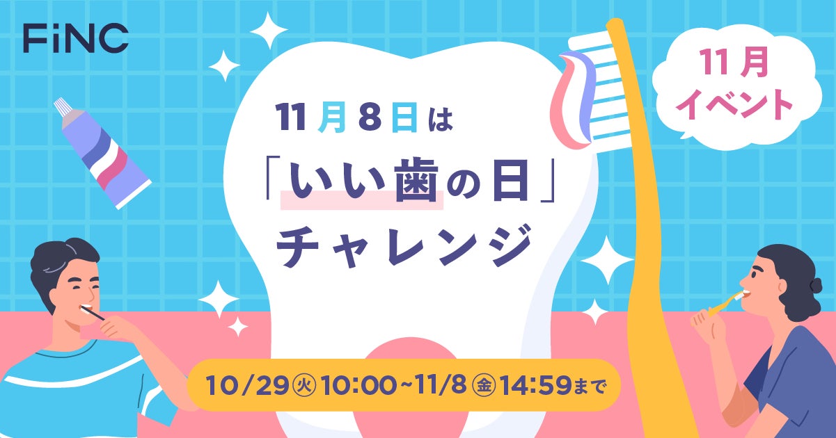 予防ヘルスケア×AI(機械学習、生成AI)に特化したヘルステックカンパニーの株式会社FiNC Technologies(本社:東京都千代田区、代表取締役 CEO兼CFO:小泉 泰郎、以下「当社」)が提供する健康管理/ダイエットアプリ「FiNC®︎」は、本日2024年10月29日(火)より、11月限定プログラム「11月8日は『いい歯の日』チャレンジ」を開始いたします。