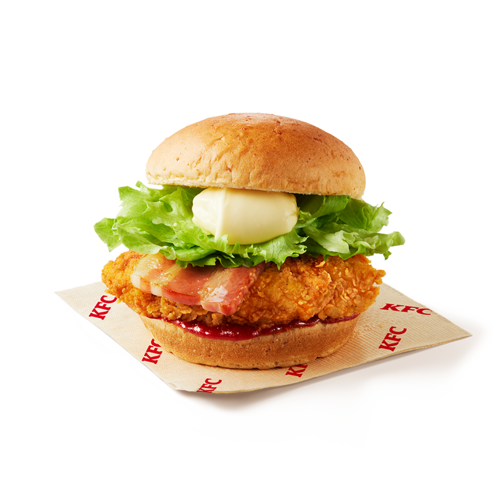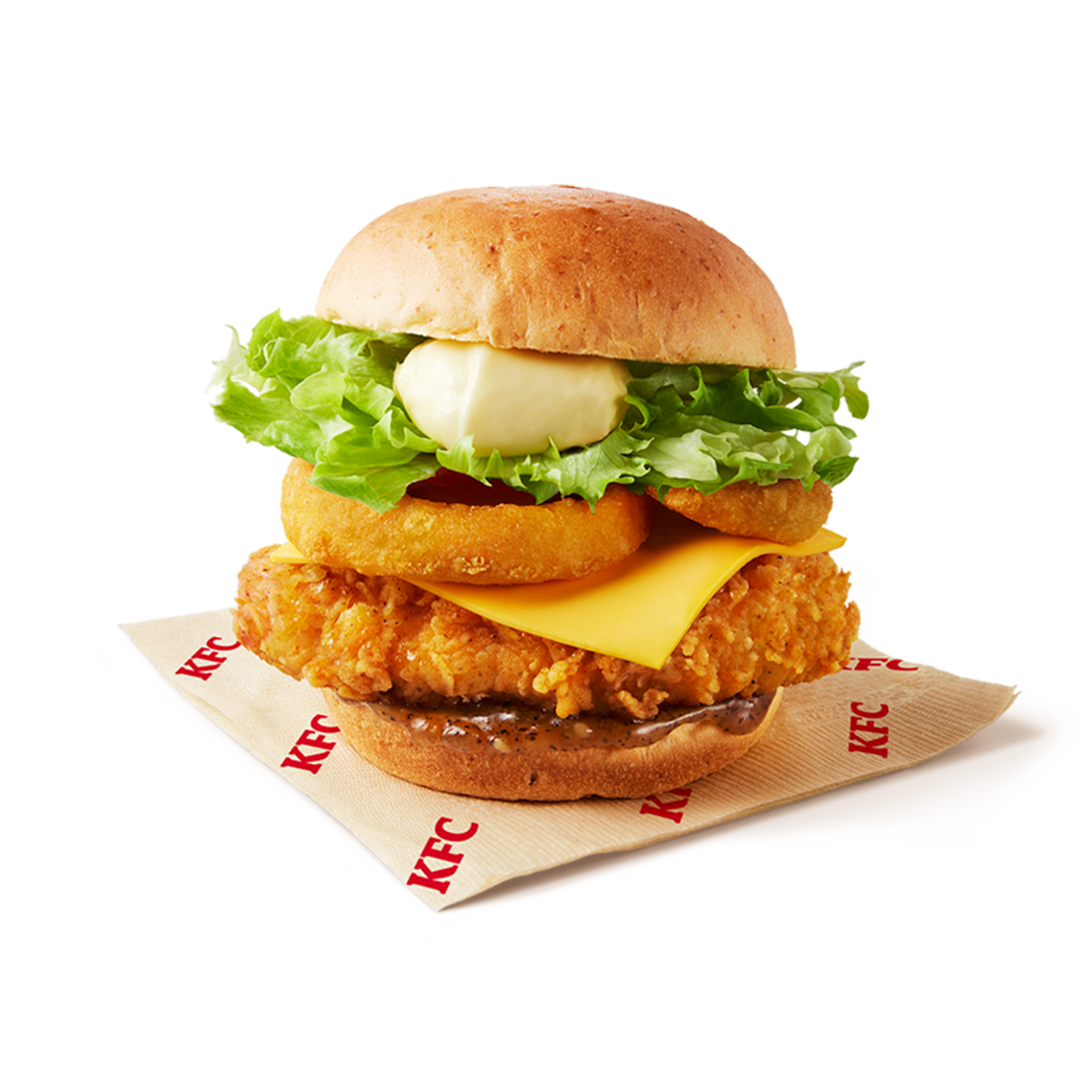 この度KFCから、“レトロアメリカン”な気分を存分に楽しめる本格派バーガーが登場します! 「スモーキートマトソースのベーコンフィレバーガー」は、KFC自慢の骨なしケンタッキーに厚切りのベーコンを合わせたワイルドな一品。チキンフィレと厚切りベーコンのジューシーさに、相性抜群のスモーキーな特製トマトソースを合わせることで魅力的な一品に仕上げました。「ガーリックソースのオニオンフィレバーガー」は、骨なしケンタッキーにオニオンリングを挟み込んだボリューム満点のバーガーです。ペッパー香る特製ガーリックソースとスライスチーズがより食欲をそそる商品となっています。