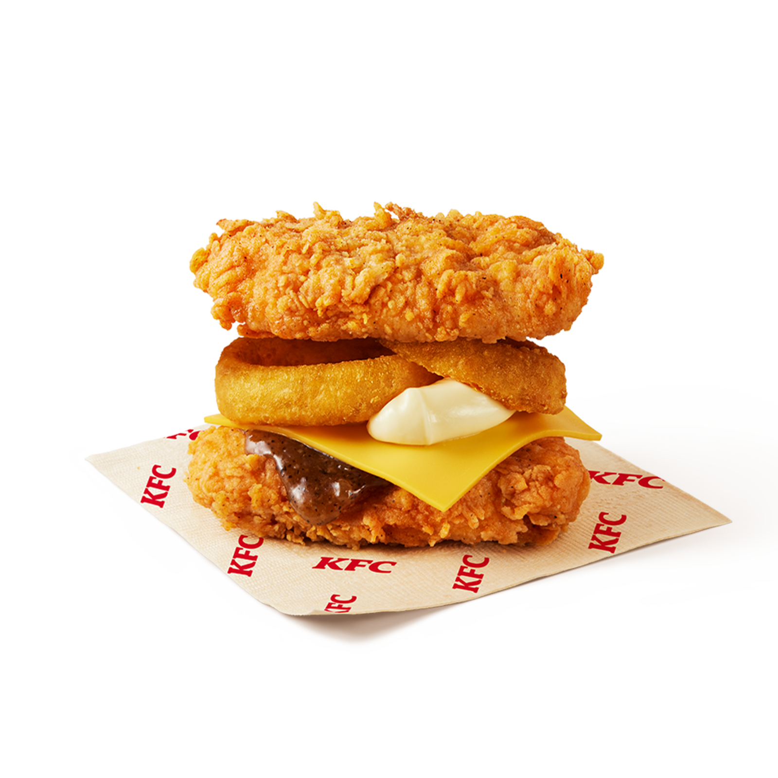 昨年、「バンズの代わりに2枚のチキンフィレで挟む」という衝撃の商品コンセプトで話題となった“凄肉”がアメリカンな装いでカムバック! 「ガーリックソースの凄肉オニオンフィレバーガー」は、オニオンリングとスライスチーズを骨なしケンタッキー2枚で挟んでおり、手に持った際にはずっしりとした重量感と圧倒的な存在感を感じていただけます。また、ガーリックとペッパーの風味が特徴の特製ソースとマヨソース、スライスチーズを間に挟むことで最後まで飽きずにお召し上がりいただけます。さらに、今回は紙袋やカップなどの包材も“レトロアメリカン”な限定デザインが登場。KFC創業当時のような古き良きアメリカンを感じられる3種の本格派バーガーを、ぜひお店でご体感ください!