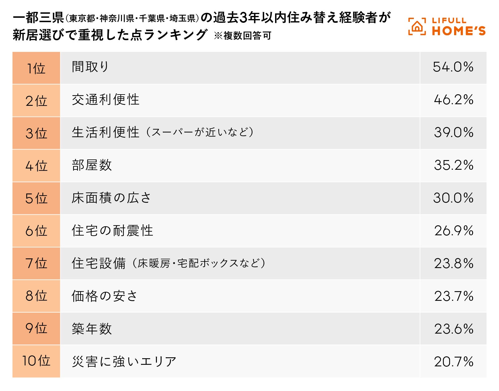 新居選びで重視したものは、「交通利便性」や「間取り」