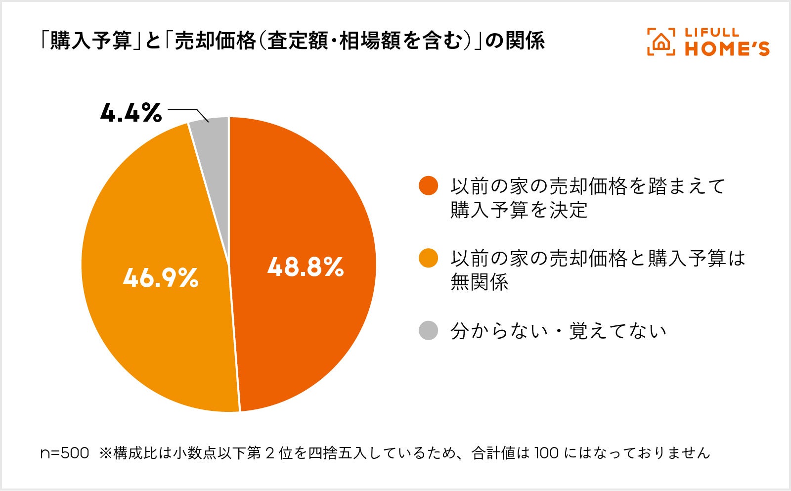売却額を考慮せずに新居の予算を決める人が半数近くにのぼる