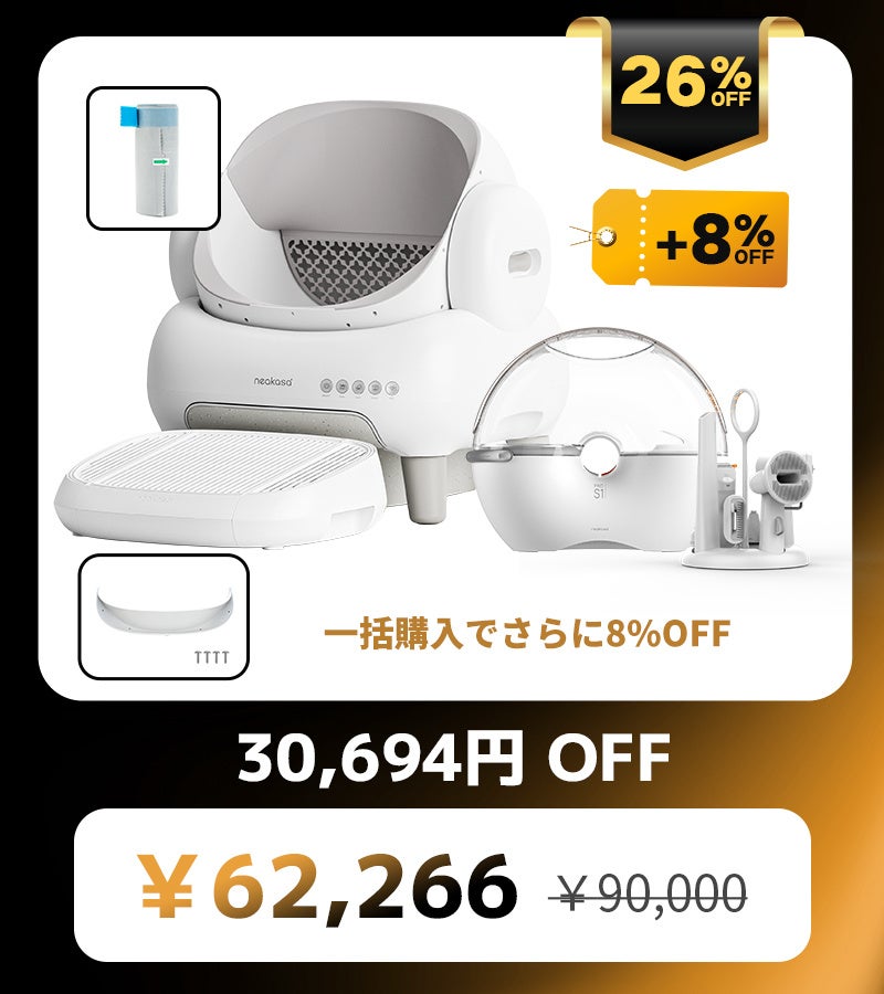 本キャンペーンでは、多頭飼いユーザーが抱える「ニオイ」「毛」「トイレ掃除の負担」に着目し、日々の暮らしをより快適にするための最新ソリューションを特別価格で提供しています。人気の猫トイレ、ペット用グルーミングキットセット購入でさらにお得 となるほか、数量限定で ギフト特典もご用意しています。