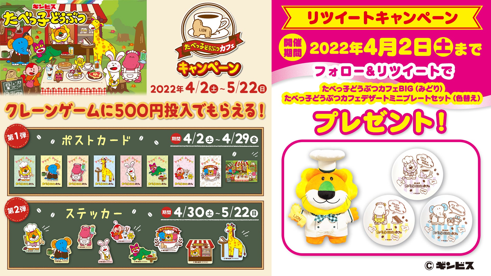 株式会社GENDA GiGO Entertainmentは、当社店舗※1におきまして、「たべっ子どうぶつ」とコラボレーションした、『たべっ子どうぶつカフェ キャンペーン』の実施をいたします。