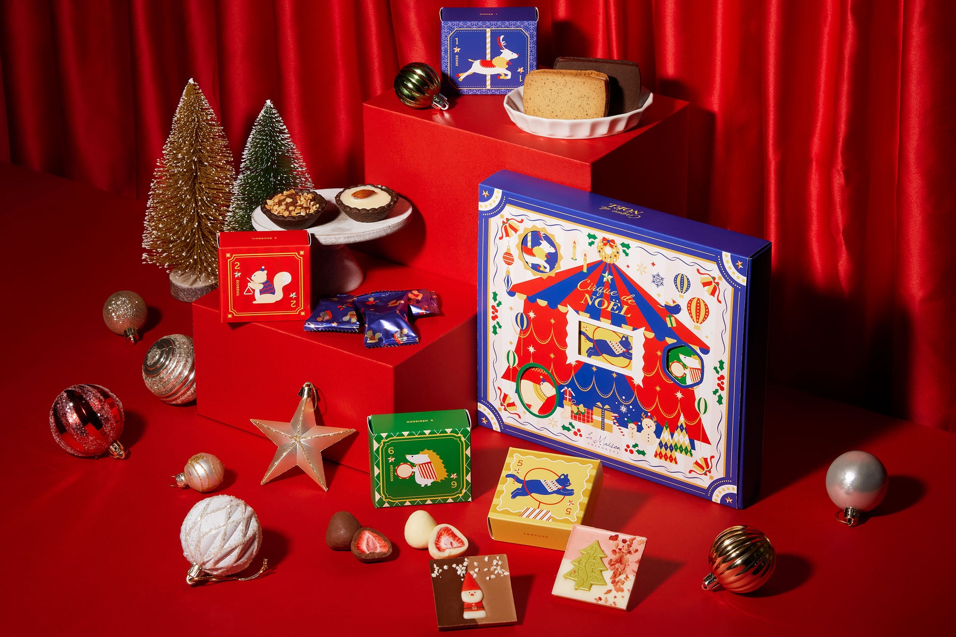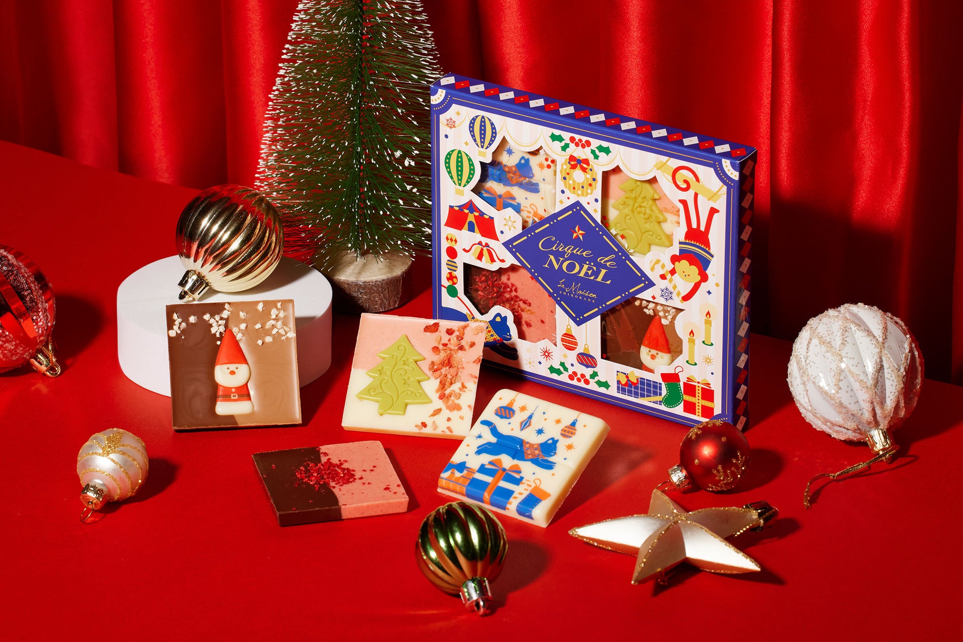サンタやツリー、シルク・ド・ノエルなどのデザインショコラがクリスマスの雰囲気を一層盛り上げます。