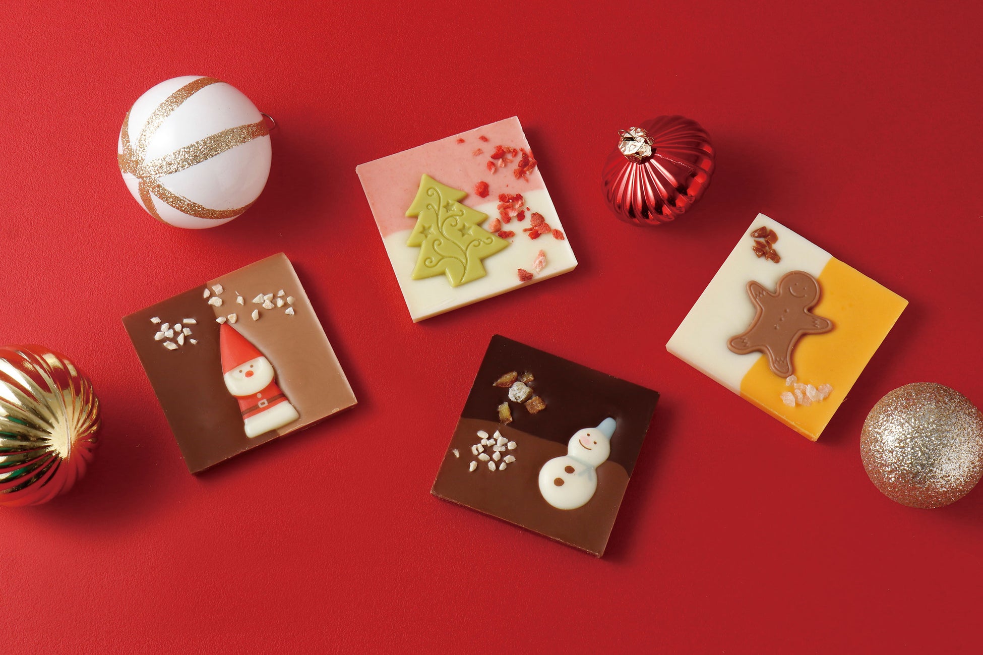 サンタ、ツリー、スノーマン、ジンジャーマンをモチーフとしたクリスマス限定の「タブレットショコラ」