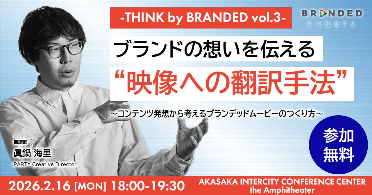 米国アカデミー賞公認・国際短編映画祭のBRANDED SHORTSがプロデュースするワークショップシリーズ「THINK by BRANDED」2月16日開催。