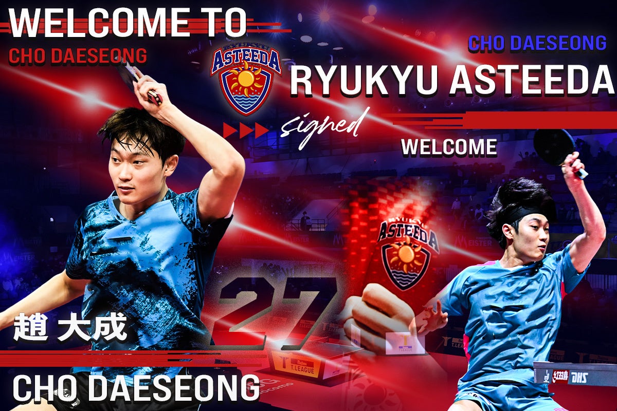 琉球アスティーダスポーツクラブ株式会社(所在地:沖縄県中頭郡中城村、代表取締役会長 兼 社長:早川周作)は、来シーズンに向けた大型補強として、卓球韓国代表であり、先のパリオリンピックでも活躍した趙大成(チョ・デソン)選手と契約合意に至りましたことをお知らせいたします。