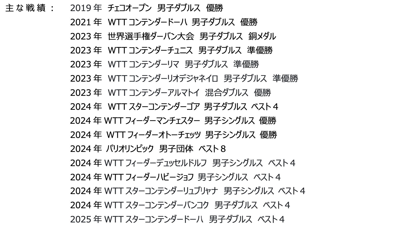 この度、琉球アスティーダに入団することになり、大変嬉しく、光栄に思います。琉球アスティーダは素晴らしいチームであり、熱狂的なファンの方々がいると聞いています。沖縄の地でプレーできることを今からとても楽しみにしています。Tリーグはレベルの高いリーグであり、そこで自分の力を試せることにワクワクしています。私の持ち味であるアグレッシブなプレーでチームの勝利に貢献し、プレーオフ進出、そして王座奪還という目標を達成するために、全力を尽くします。