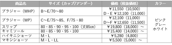 街路樹に咲くハナミズキの花が思い起こさせてくれるのは、かすかに耳に残る懐かしいメロディ。そんなストーリーをイメージして生まれたシリーズです。控えめなトーンにやさしさが漂うカラーと、シャイニーな輝きが上品な美しさを演出します。ブラジャー(WHP)は、クッション性の高いファイバーフィルを使用したリフトアップ効果の高いパターン。くい込みや締めつけ感のないラクな着けごこちです。