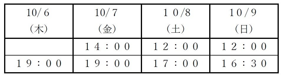 日程 2022年10月6日(木)~10月9日(日) シアタートラム