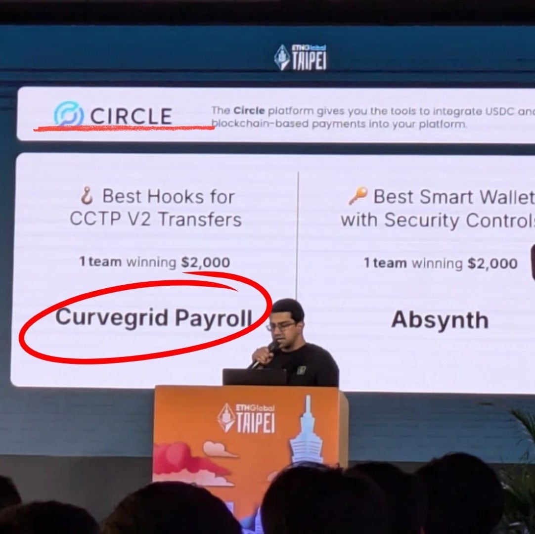 給与支払いを簡単かつ安全にWeb3化する「Curvegrid Payroll」を開発。Circle社のCCTPv2によるクロスチェーン送金とCurvegrid社のSpreadsheetを使った直感的な操作により、誰でも手軽にステーブルコイン給与の受取・運用ができる仕組みを実現しました。