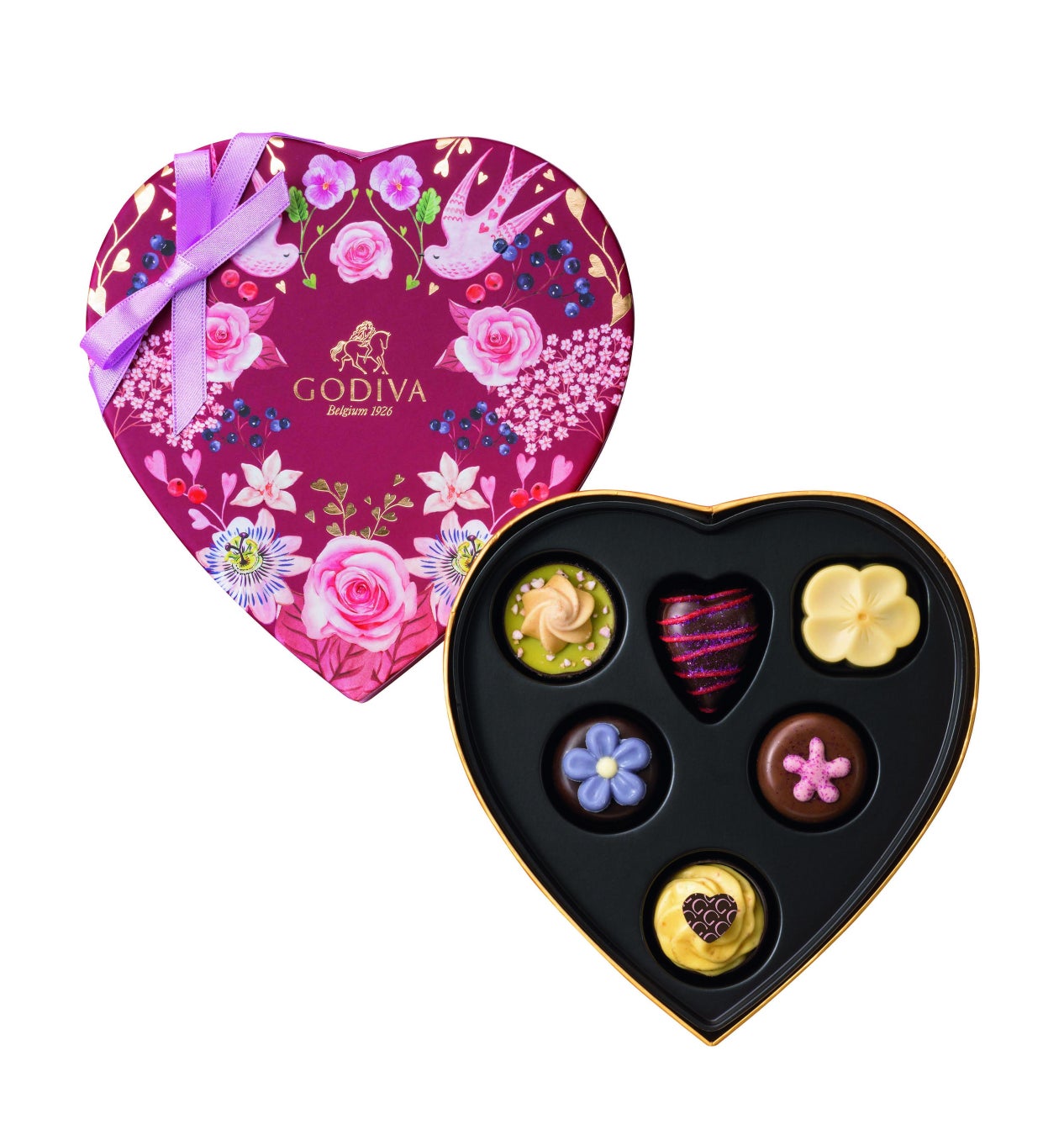 内容:ハート形のパッケージに、まるでブーケのような6種類の限定チョコレートを詰め合わせました。