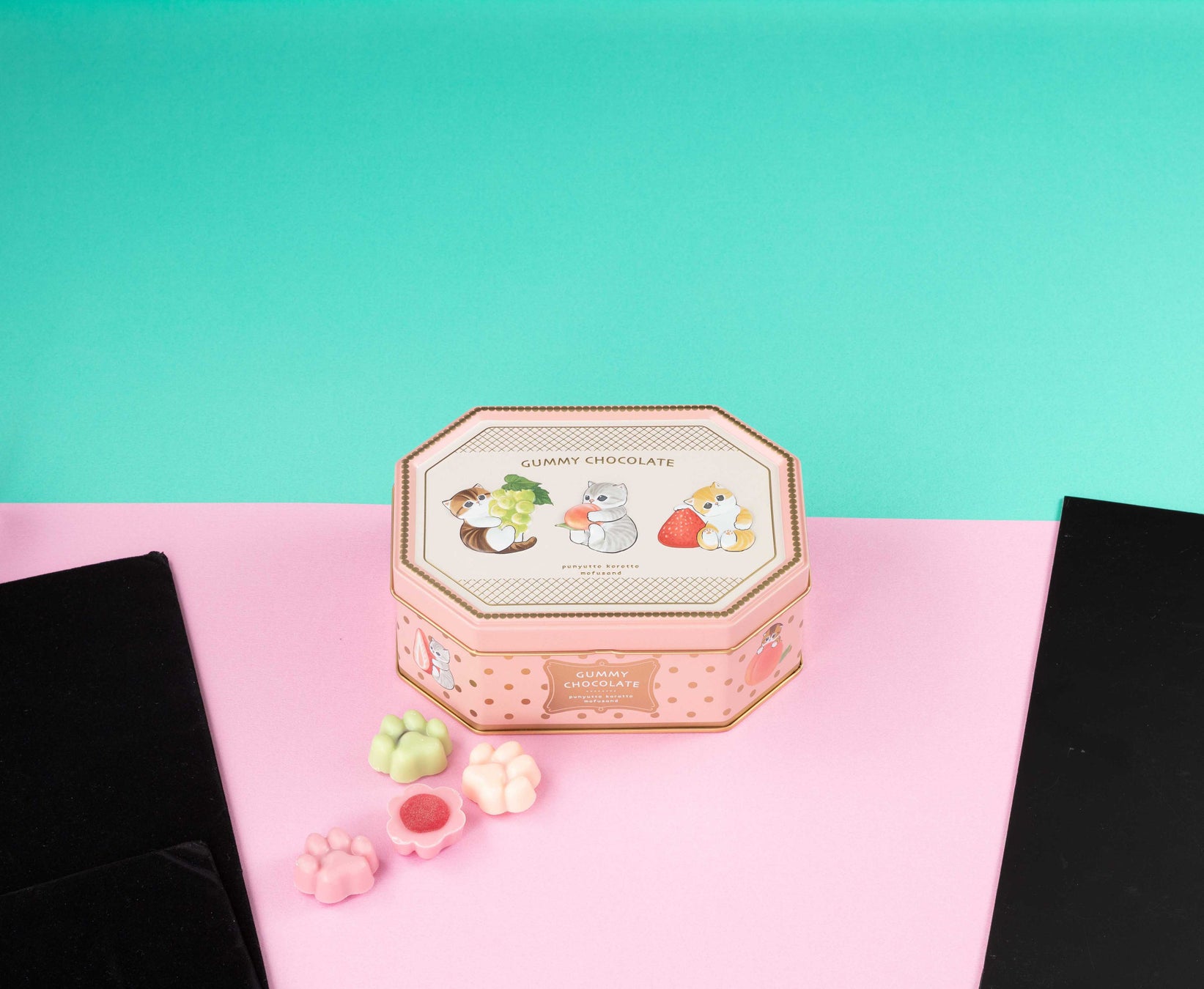 話題のキャラクターたち「mofusand」とコラボした肉球型のグミチョコレート。