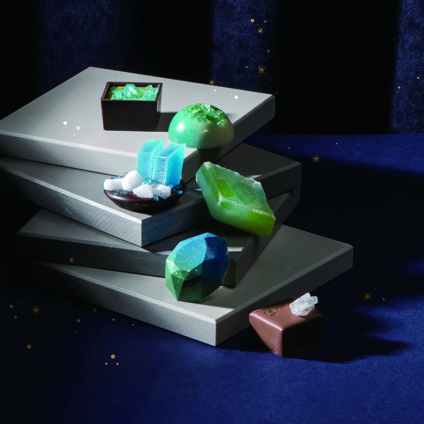 惑星のかけらをイメージした、美しい宇宙鉱物たちをチョコレートで表現。
