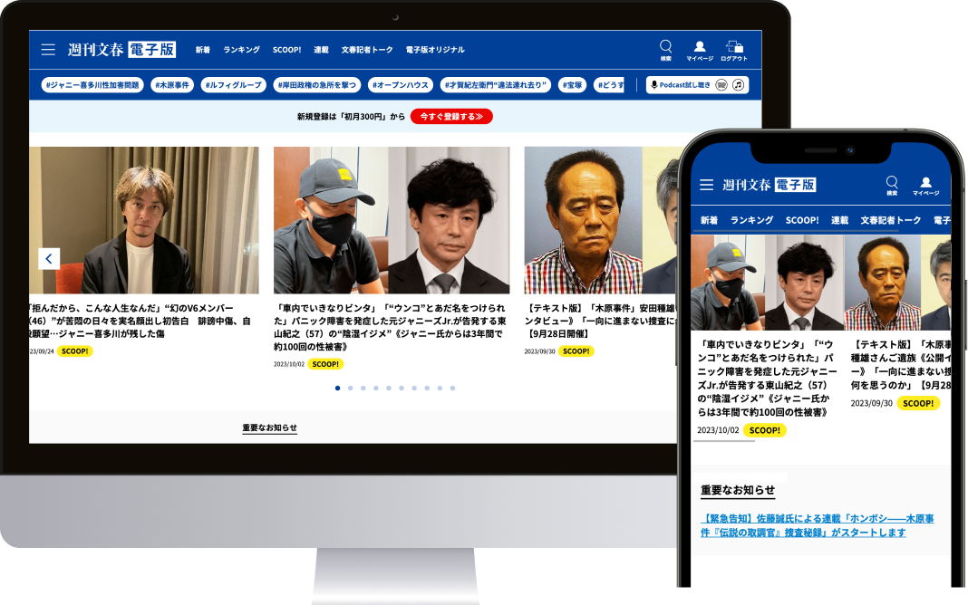 このたび、通常号よりも記事本数が多く、内容充実の合併号発売のタイミングで割引キャンペーンを実施します。発売日前日のスクープ記事に加え、過去記事も読み放題。紙の雑誌には掲載していない電子版オリジナル記事、記者と編集者による動画番組「文春記者トーク」、オンラインイベントなども配信しています。この機会にぜひお試しください。