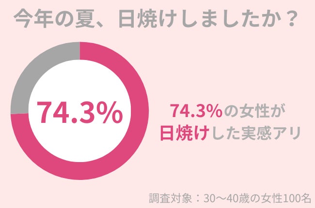 調査の結果、74.3%と大部分の女性が、今年の夏の日焼けを実感していることがわかりました。