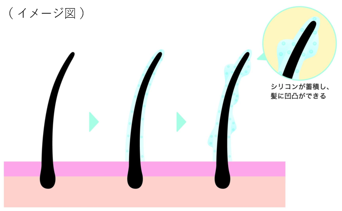 シャンプー、トリートメントに配合されるシリコーンなどのコーティング剤が毛髪表面に蓄積された状態のことをビルドアップといいます。ビルドアップが起こるとべたつき、ごわつき、ツヤが消える、まとまりにくくなる、などの原因に。蓄積されにくいシリコーン※9を厳選し、余分なシリコーンの付着を抑制するために大切なうるおい成分を配合しました。