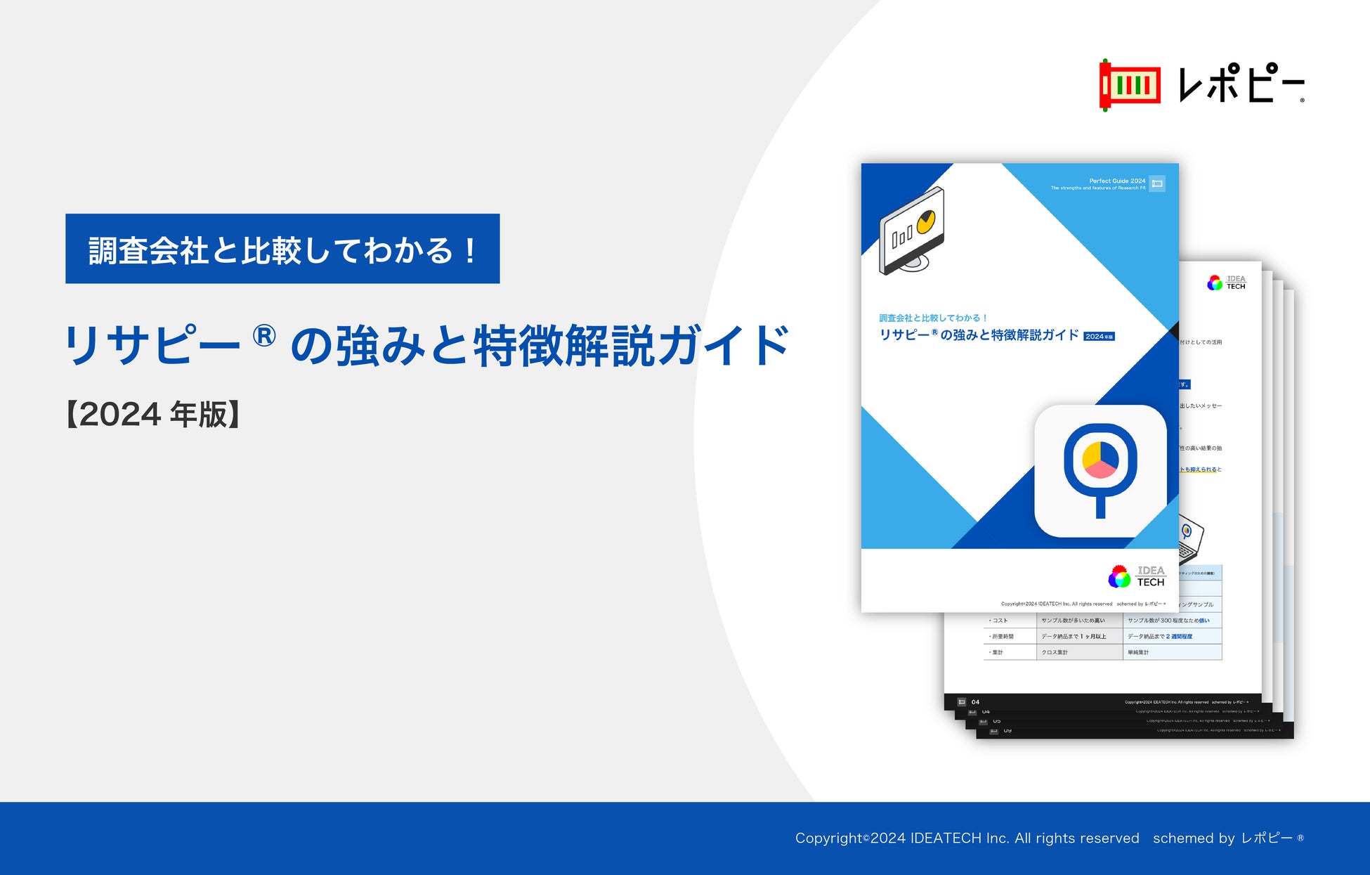 ワンストップでリサーチデータマーケティングを実現する「リサピー®️」(https://ideatech.jp/service/research-pr)を運営する株式会社IDEATECH(本社:東京都港区、代表取締役社長:石川友夫、以下 IDEATECH)は、リサピー®の強みと特徴解説ガイドを無料公開しました。