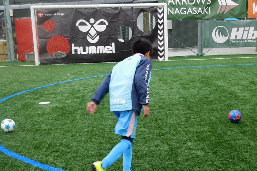 ジュニアシューズ「プリアモーレ」の試履きとキックターゲットを実施。