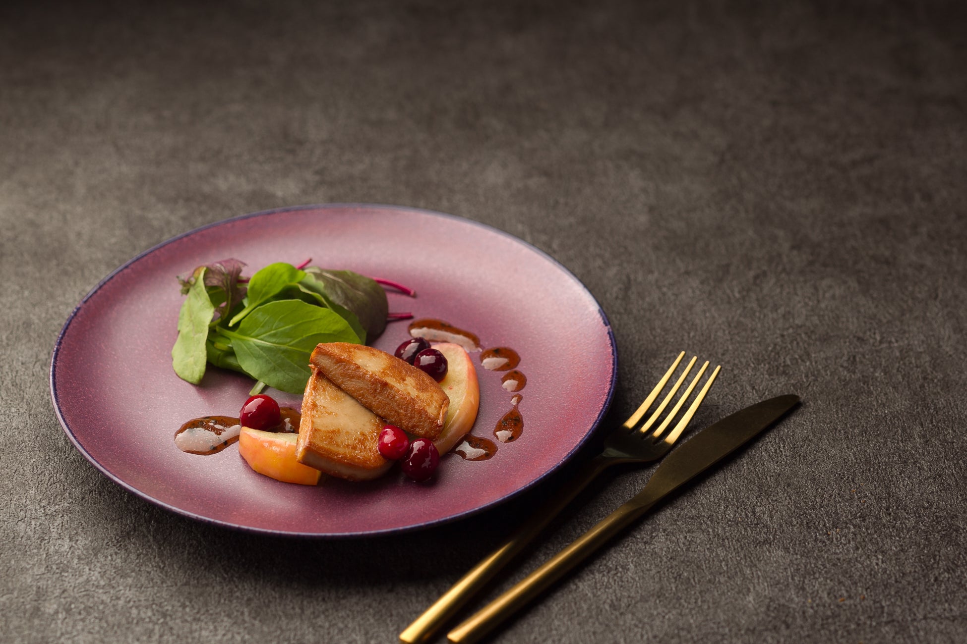 ライブキッチンで香ばしく焼き上げたグラフォアにマッシュポテトとリンゴのコンポートを添えた一品。ミックスベリーソースの酸味が濃厚なグラフォアのうまみを引き立てます。