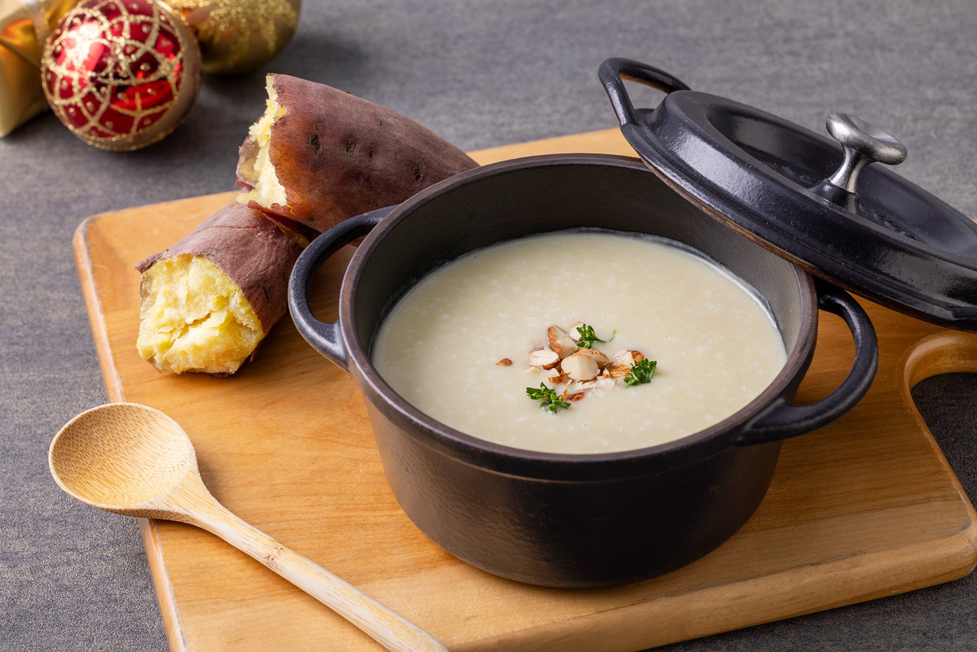 さつま芋の甘みにミルクの風味がやさしいポタージュ。焼きたてパンと合わせてお召し上がりいただくのもおすすめです。