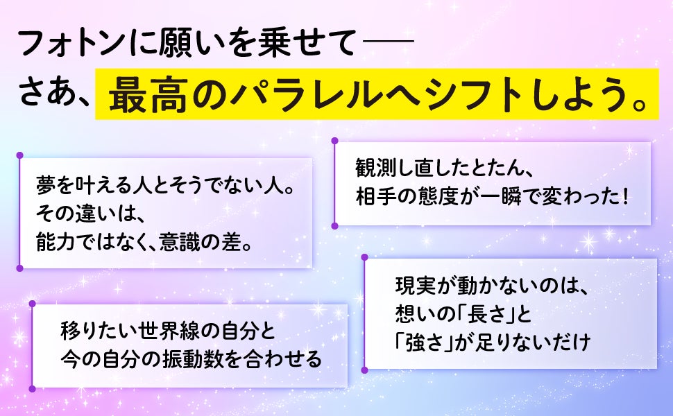 生きる「世界線」は、今すぐにでも変えられる! 大人気YouTuberゆさが贈る、「願いが全部叶うパラレルシフト」の法則。量子力学×宇宙の力で現実を魔法のように変える一冊、7月2日発売!