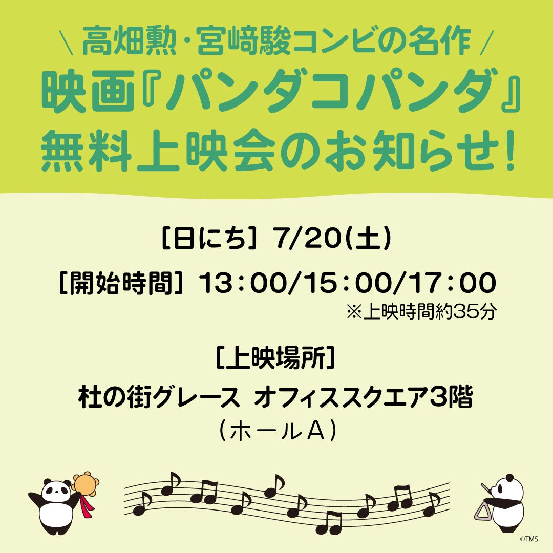 【杜の街グレースからのお知らせ】「パンダコパンダ展 岡山・杜の街の巻」をより楽しむための 映画「パンダコパンダ」無料上映会を7月20日に開催