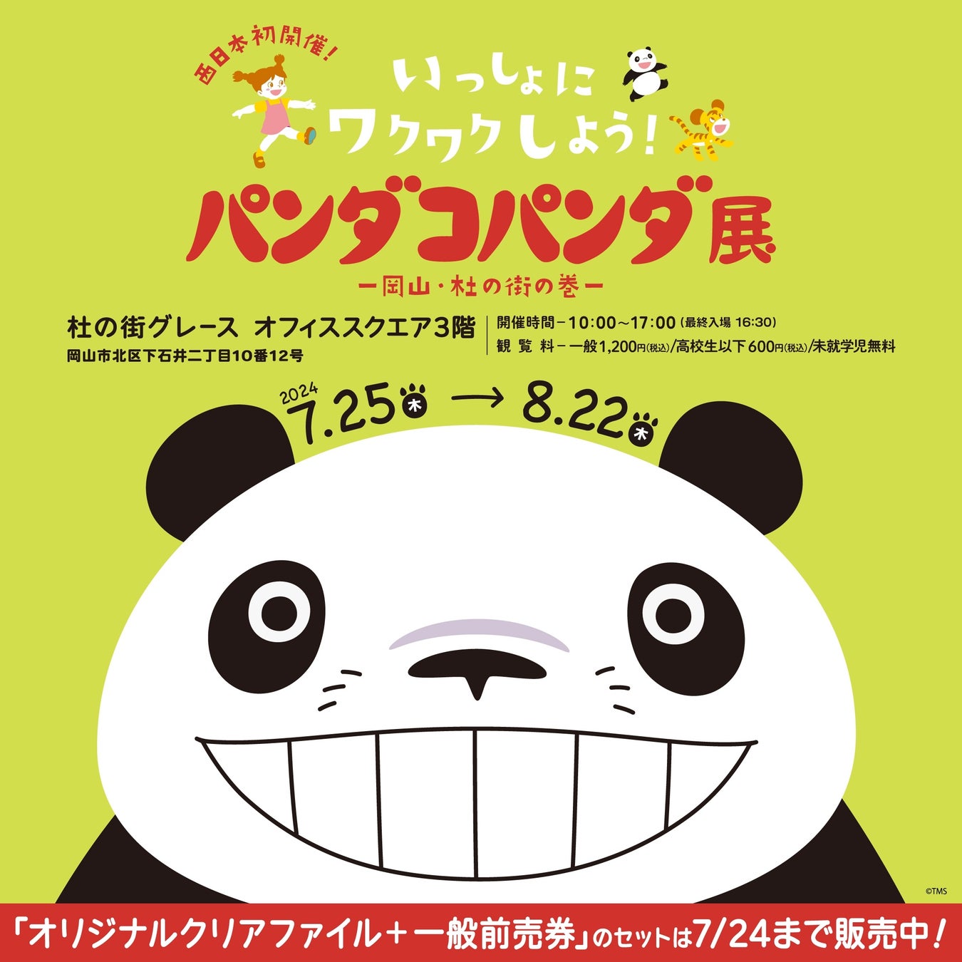 両備ホールディングス株式会社(本社:岡山県岡山市北区下石井2-10-12 杜の街グレース オフィススクエア、代表取締役社長:松田敏之)は、自社が運営管理する岡山市街地の中心に位置する複合型商業施設、杜の街グレース(岡山県岡山市北区下石井|https://www.morinomachi-grace.jp/)にて、2024年7月25日(木)~8月22日(木)に「パンダコパンダ展 岡山・杜の街の巻」を開催します。これに先立ち、展覧会をより楽しんでいただくための上映会を 6月に実施しましたが、大好評につき、第二弾となる無料上映会を7月20日(土)に開催いたします。 上映会会場では、オリジナルクリアファイルとセットになった「パンダコパンダ展 岡山・杜の街の巻」の前売券も販売いたします。