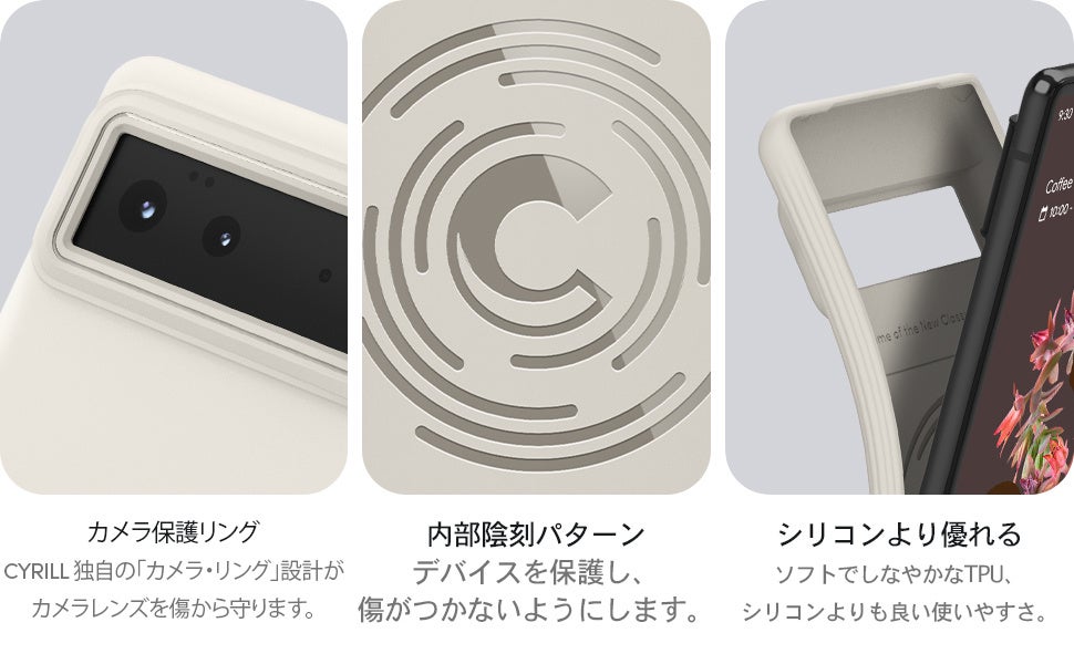 柔軟性と耐久性に優れたTPU素材を採用し、ほこりが付かず快適なグリップ感を与えます。カメラ側の端にCYRILL独自のプロテクションリングを設計し、カメラをきちんと保護できるようにしました。 シリルだけのストーンで感覚的なあなたを表現してみてください!