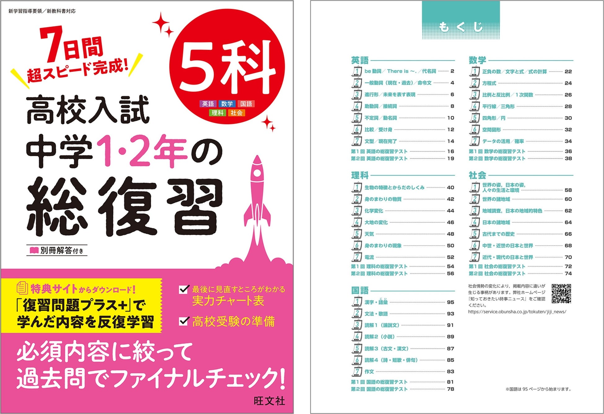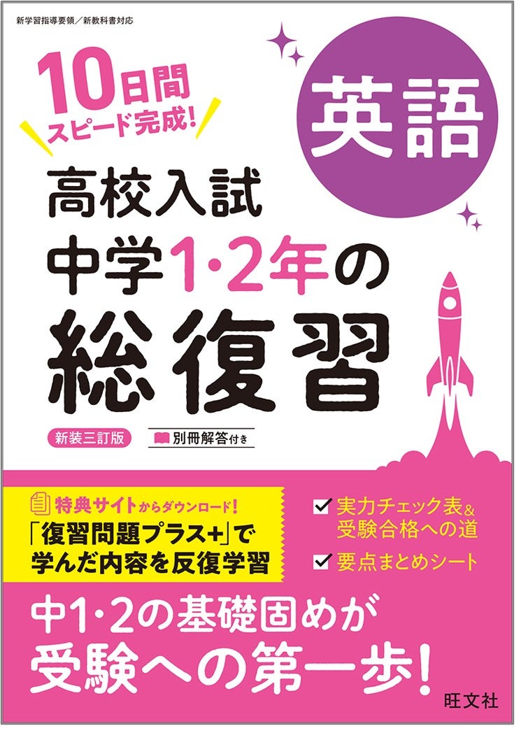 教育出版の株式会社旺文社(東京都新宿区/代表取締役社長 粂川 秀樹)は、『高校入試 中学1・2年の総復習 英語 新装三訂版』『高校入試 中学1・2年の総復習 数学 新装三訂版』『高校入試 中学1・2年の総復習 国語 新装三訂版』『高校入試 中学1・2年の総復習 理科 新装三訂版』『高校入試 中学1・2年の総復習 社会 新装三訂版』『高校入試 中学1・2年の総復習 5科』