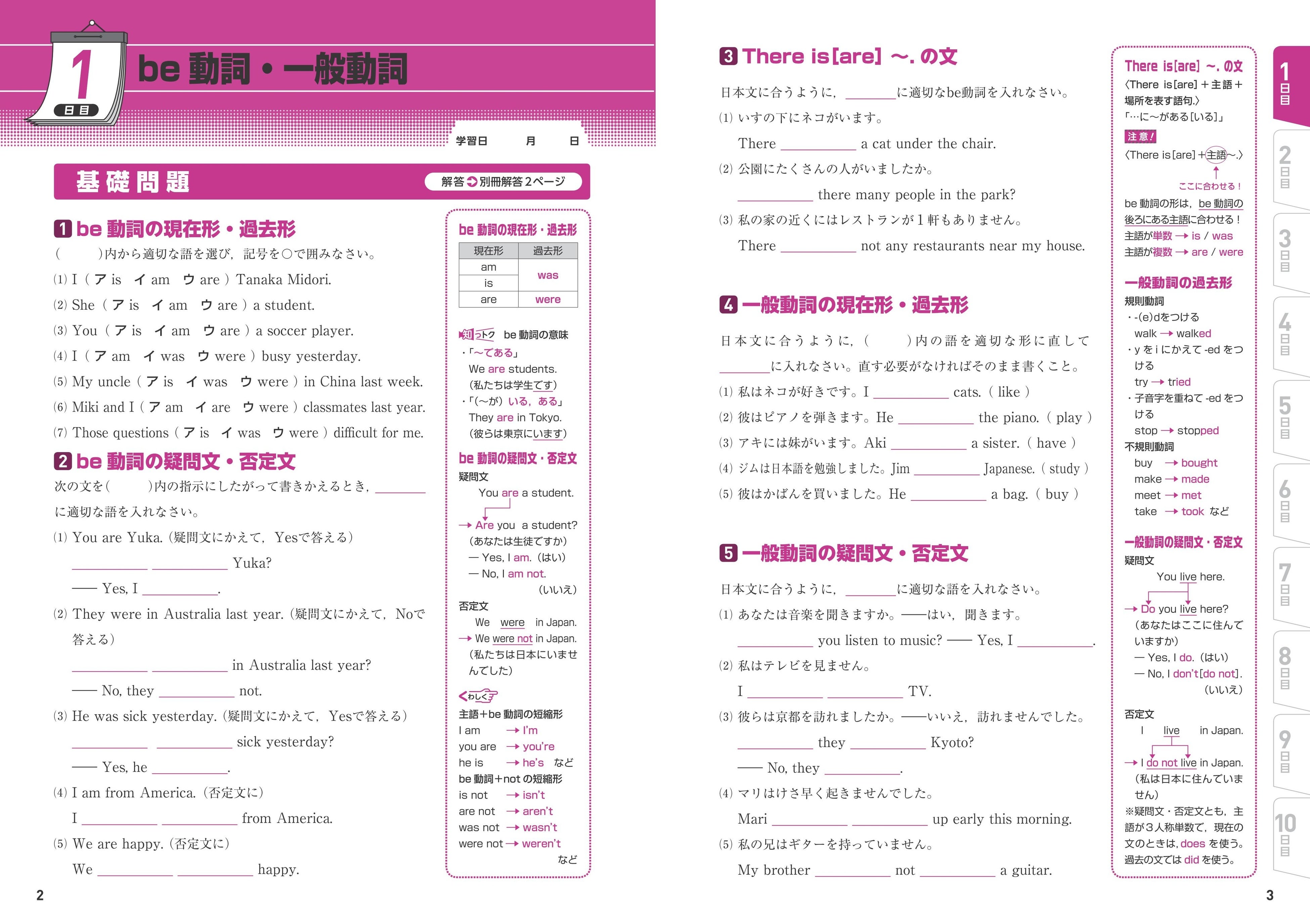 「英語/数学/国語/理科/社会」の各教科は、10日間の短期集中で学習でき、「基礎問題」と「基礎力確認テスト」の2ステップで、取り組みやすい構成になっています。