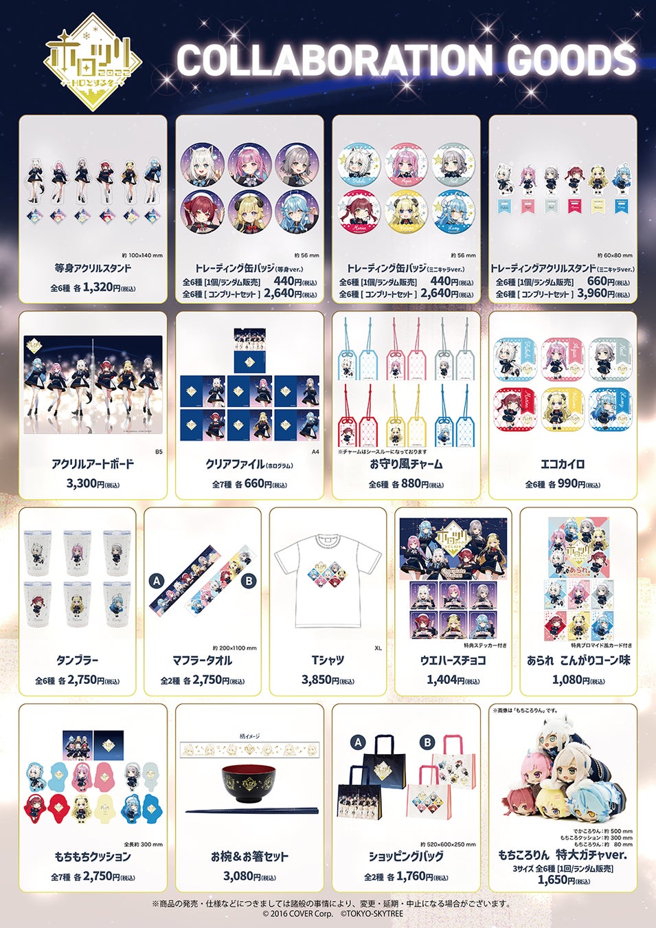 イベント限定のオリジナルグッズには、「ホロライブ」所属VTuber6名の限定オリジナルの描き下ろしイラストを使⽤した「アクリルスタンド」や本人メッセージ入りの「お守り風チャーム」、また「特大もちころりん」を賞品とした巨大ガチャなど注⽬のアイテムが多数登場!