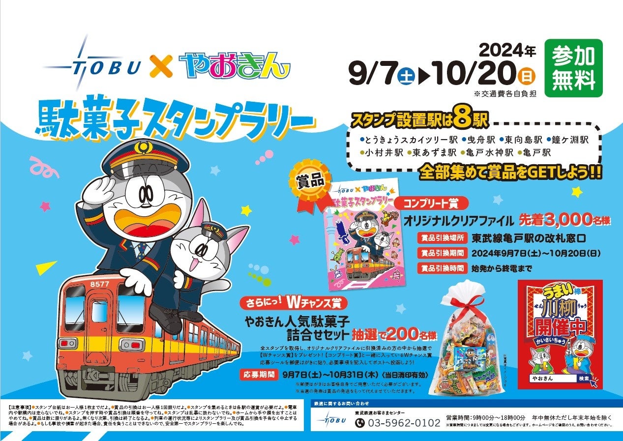 2024年9月7日(土)~2024年10月20日(日)まで「東武鉄道×やおきん 駄菓子スタンプラリー」を実施します。