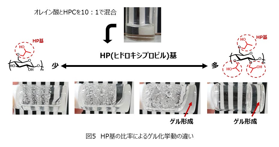 さらに、水に溶解しやすいように加工したHPCで、このゲル化が効果的に発現し、多くのOAをトラップできることがわかりました(図5)。